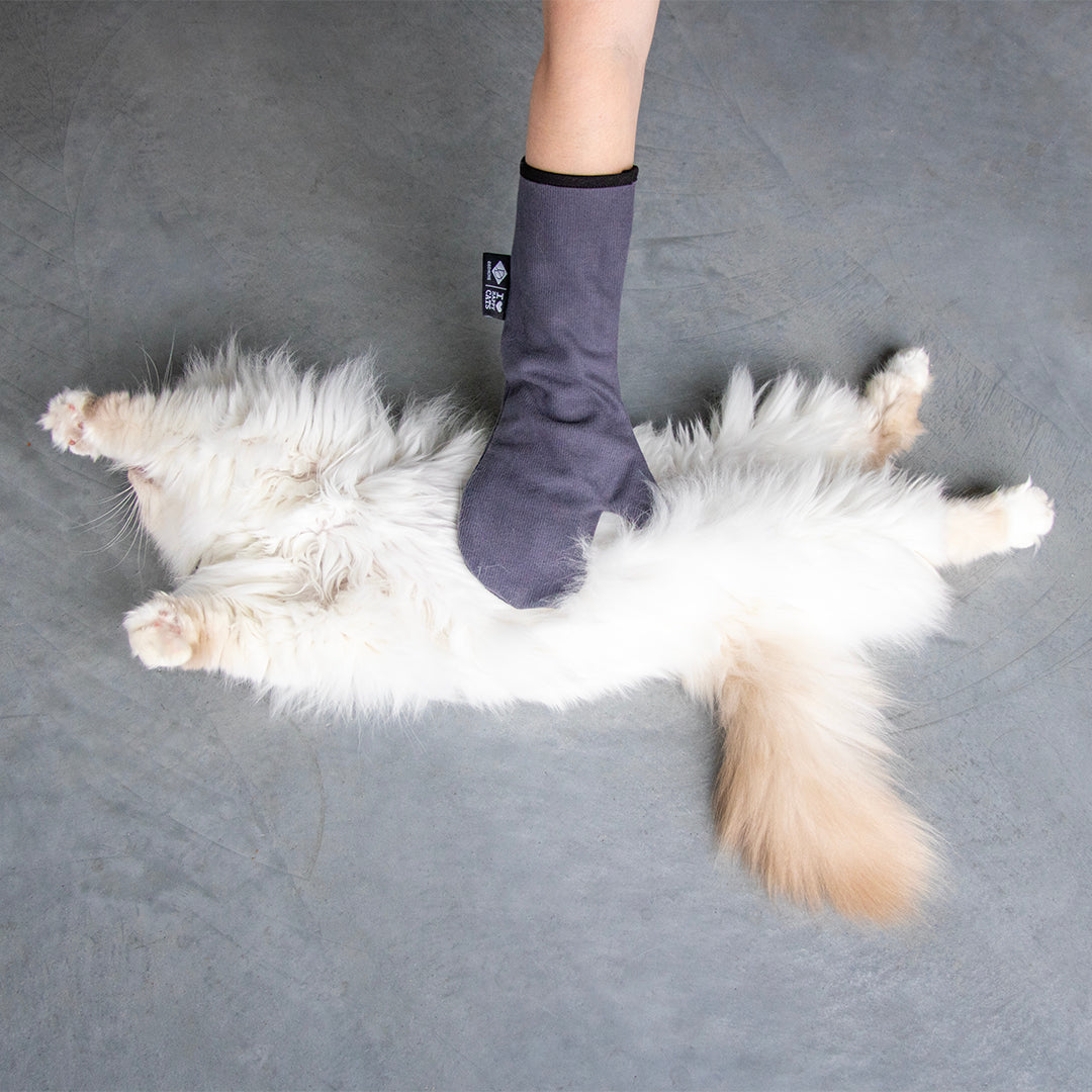 De AMBER verzorgingshandschoen van D&D Home | I LOVE Happy Cats is ontworpen in samenwerking met kattengedragstherapeut Anneleen Bru en vormt de beste manier om loszittende haren uit de vacht van je kat te verwijderen. Ja, zo eenvoudig is het! Vachtverzorging met het juiste gereedschap is van essentieel belang voor een gezonde vacht. Deze mooie zachte handschoen van microvezel is in feite de enige bewezen manier om loszittende haren uit de vacht van je kat te verwijderen en hij helpt om de rest van de vacht van je kat intact, gezond en onbeschadigd te houden. Het is ook een heerlijke manier om de band met je kat te versterken! Instructies: maak de handschoen een beetje vochtig en strijk om de paar dagen over de vacht van je kat. Bovendien is de handschoen zeer nuttig om je oudere kat te helpen bij de vachtverzorging, vooral achteraan het lichaam en rond de staart en achterpoten.