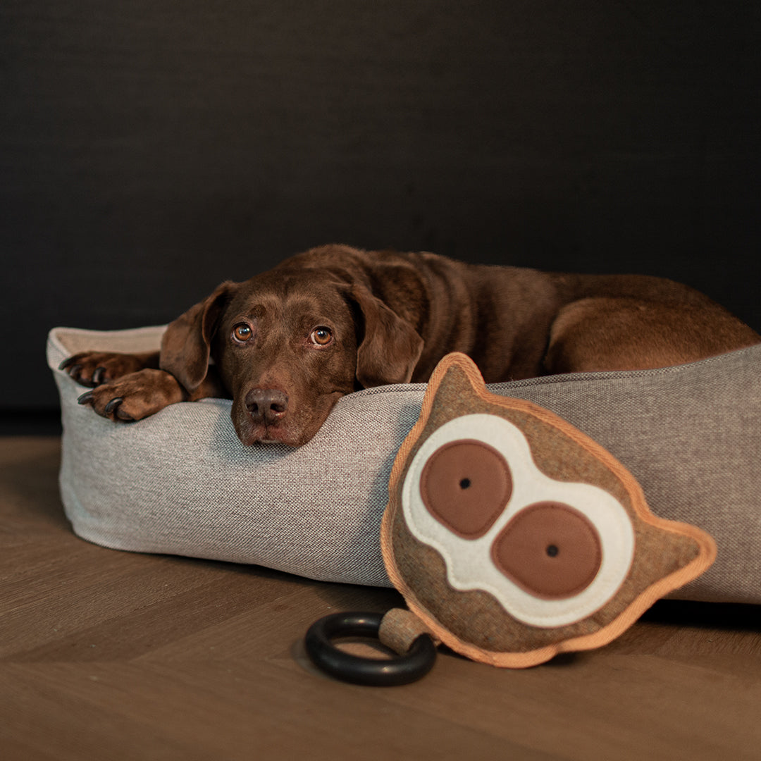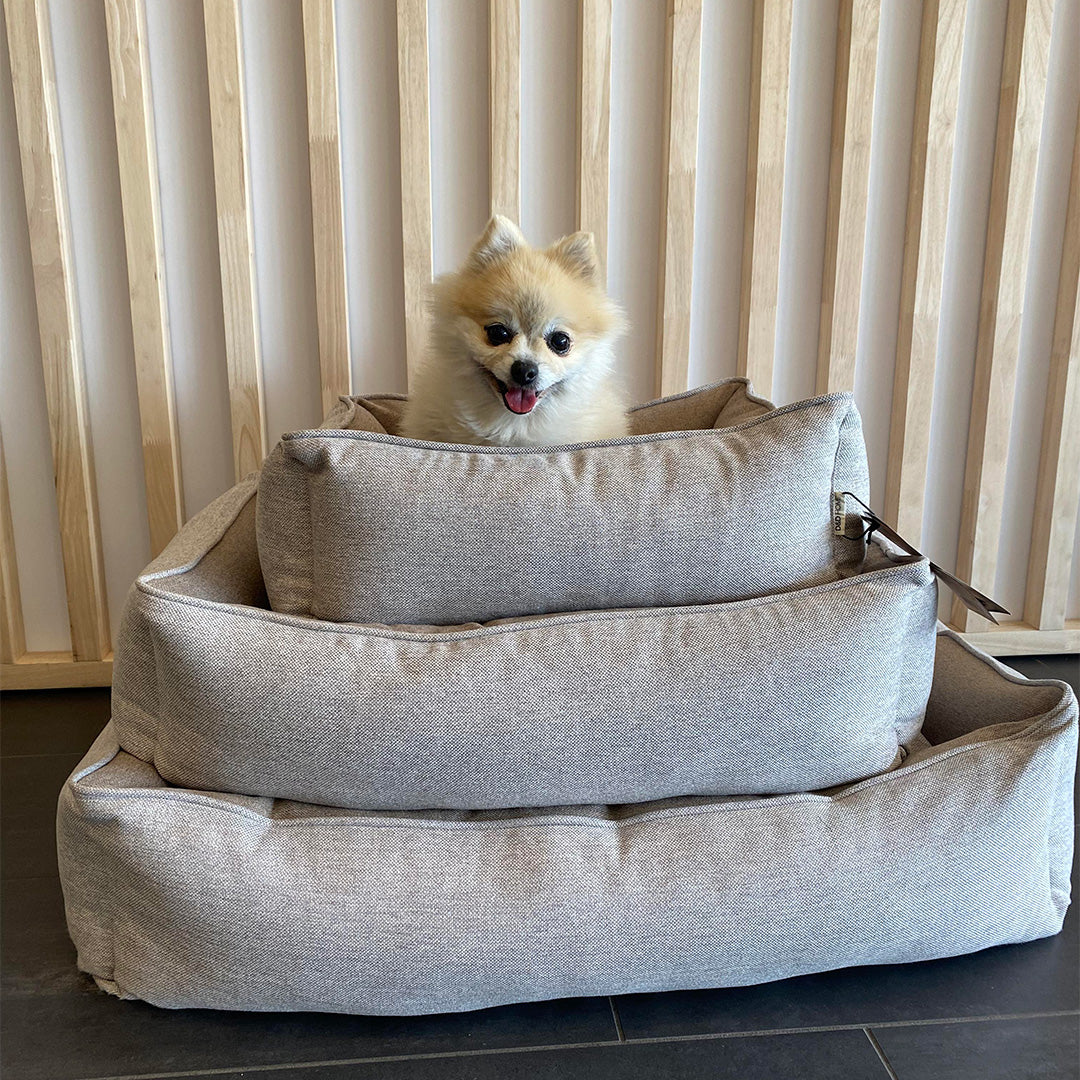 D&D Home hondenmand Bob is een kussen dat zowel een donkere als een lichte look kan aannemen. Zowel het binnenkussen als de buitenband zijn om te draaien waardoor het kussen ineens een hele ander look krijgt. De buitenband van het kussen is rijkelijk gevuld zodat je huisdier een goede ondersteuning heeft voor het hoofd. Het kussen is voorzien van een anti-slip onderkant waardoor het beter op zijn plek blijft liggen. Ook de vulling van het binnenkussen is in een gewoven stof, zodat deze langer meegaat wanneer het vaker uit de kussenhoes wordt gehaald.