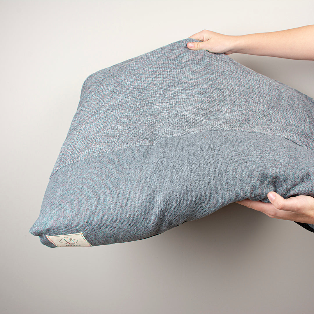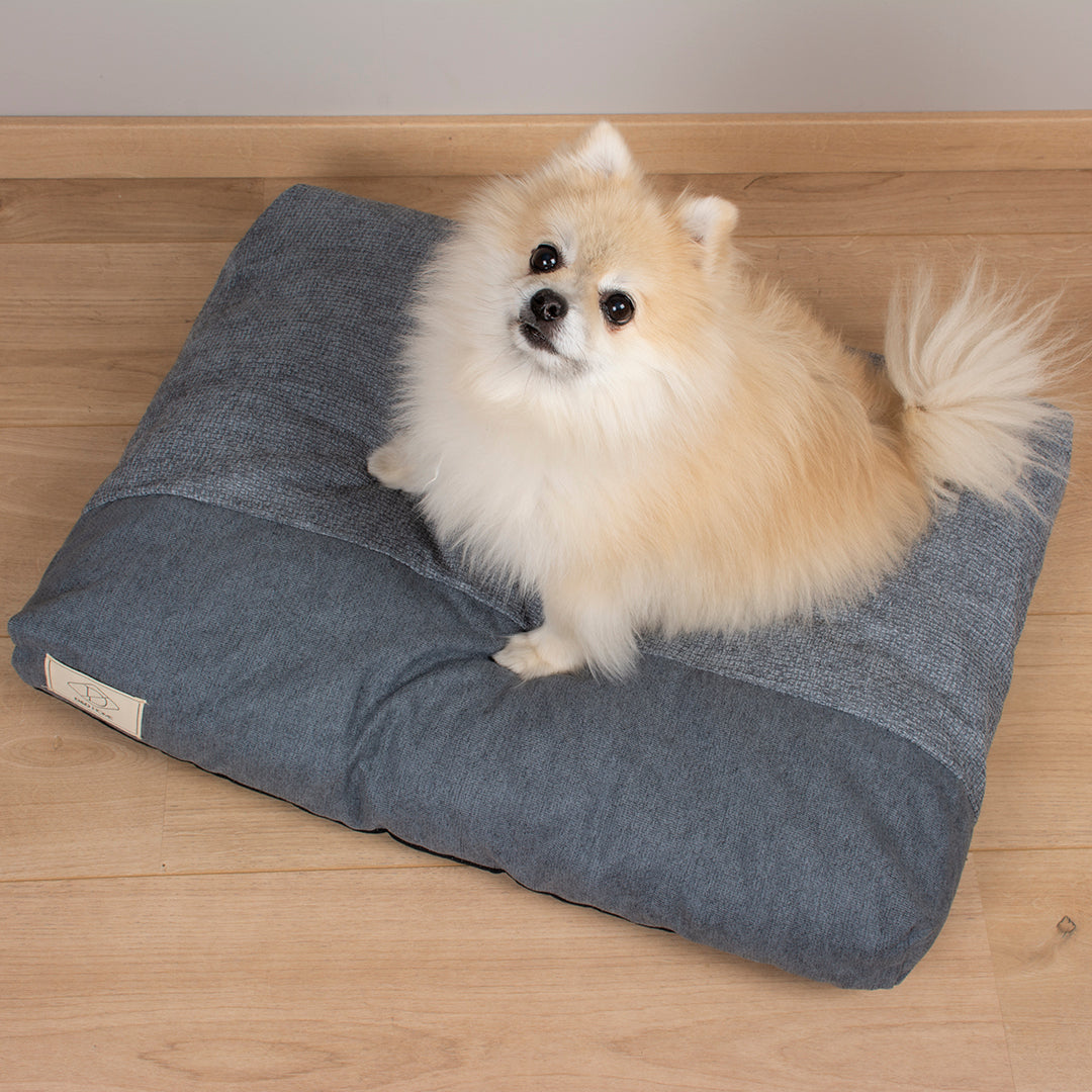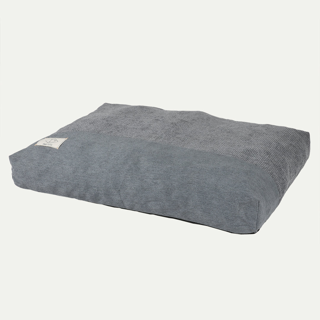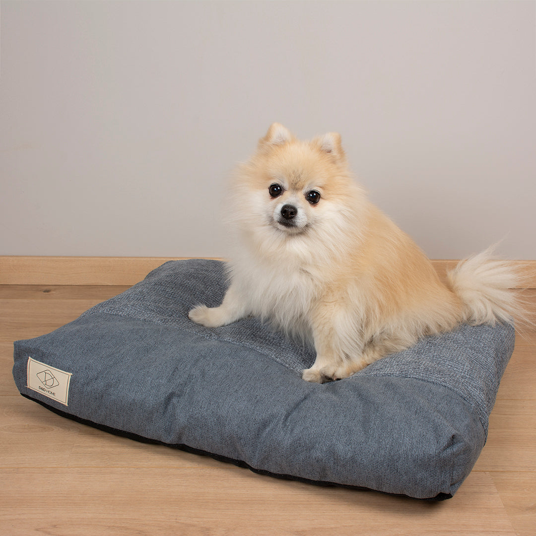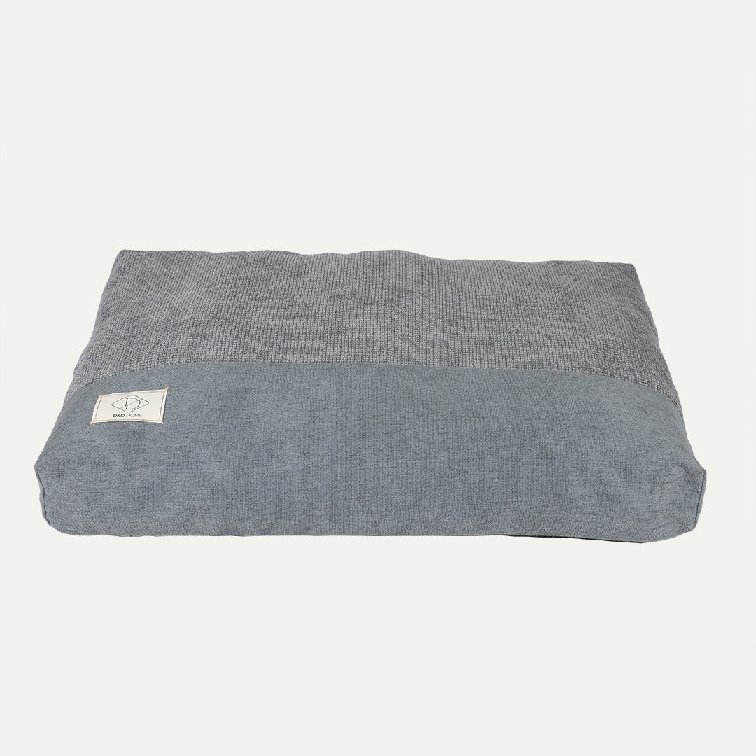 D&D Home kussen Ellis is een stijlvol hondenkussen gevuld met memoryfoam vlokken waardoor het kussen zich helemaal naar het lichaam van je hond kan vormen en ondersteuning biedt om gewrichtspijn te voorkomen of verlichten. Memory foam heeft als eigenschap dat het vormvast is en weer in zijn oorspronkelijke vorm terugkeert. De kussenhoes is gemaakt van 2 verschillende soorten interieurstoffen waarin 'ton-sur-ton' kleuren zijn gebruikt om een rustig geheel te creëren. Door de wat grovere stof zijn vlekken minder goed zichtbaar. De hoes is uitwasbaar en doordat er ook een gewoven binnenkussen aanwezig is, gaat deze veel langer mee wanneer het vaker in en uit het kussen wordt gehaald. Door het gewicht van het kussen en de anti-slip onderkant, zal het niet snel verschuiven.