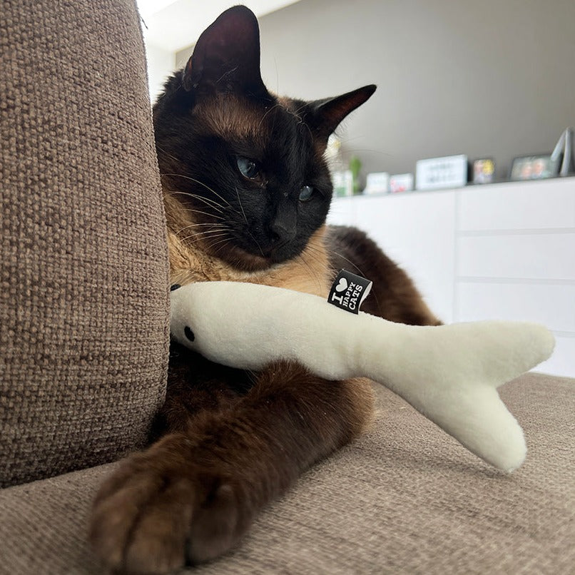 Met het FINN speeltje van D&D Home | I LOVE Happy Cats kan je kat naar hartenlust spelen, trappen en knuffelen. Dit schattige speeltje in visvorm is gemaakt van zachte pluche en is ontworpen in samenwerking met kattengedragstherapeut Anneleen Bru. De vorm van dit speeltje bootst perfect de vorm en grootte na van de natuurlijke prooien van onze katten in het wild. Daardoor kunnen onze katten de manier nadoen waarop zij met prooien omgaan. Je kat zal FINN vastklemmen met haar voorpoten en er dan in bijten en ertegen trappen met haar krachtige achterpoten. FINN heeft ook een lus op zijn hoofd zodat je hem aan onze telescopische CONNOR-hengel kan vastmaken. Een must-have voor elke kat. Happy Tip! Trapkussens zijn een fantastische beloning voor je kat na een interactief jachtspelletje met de CONNOR-hengel.