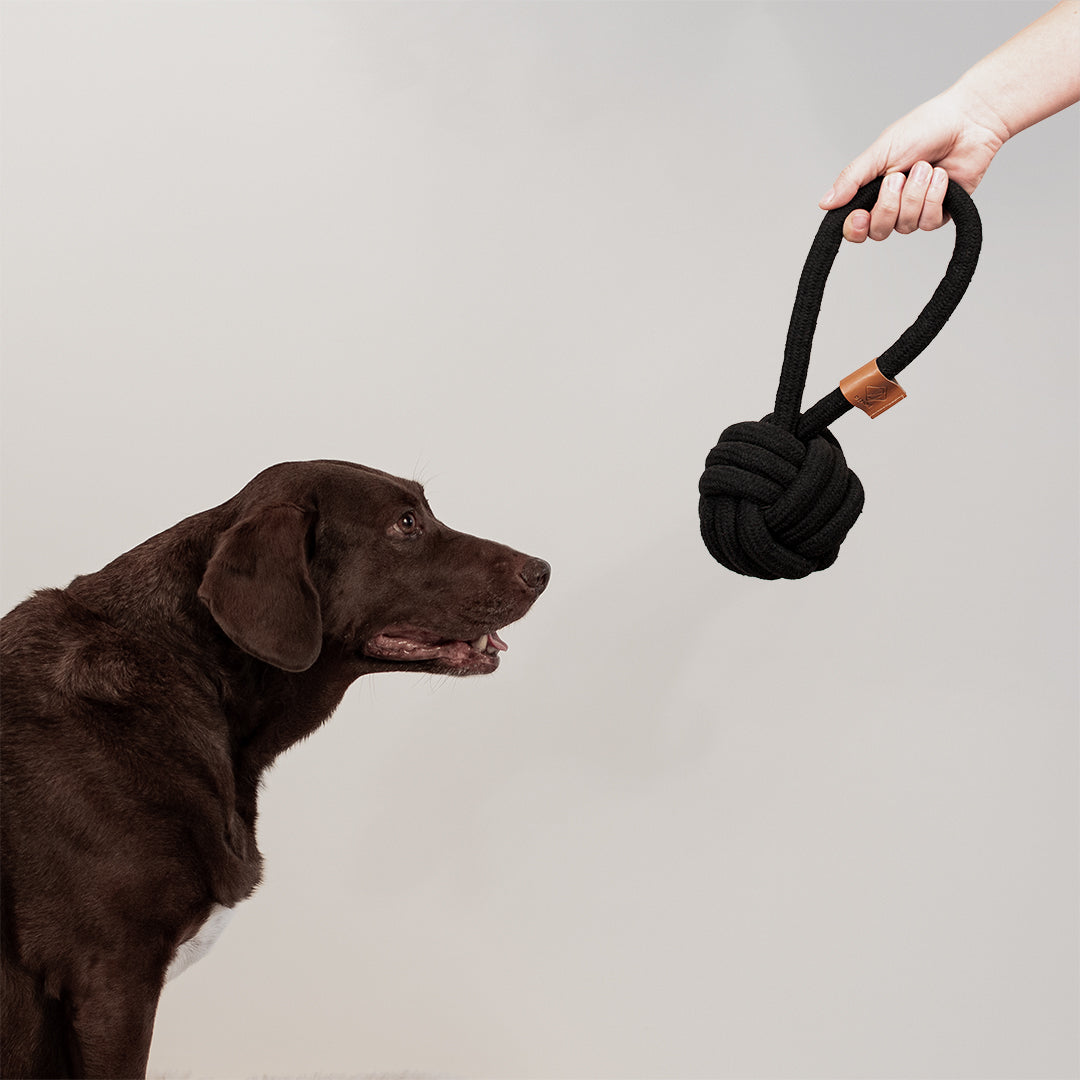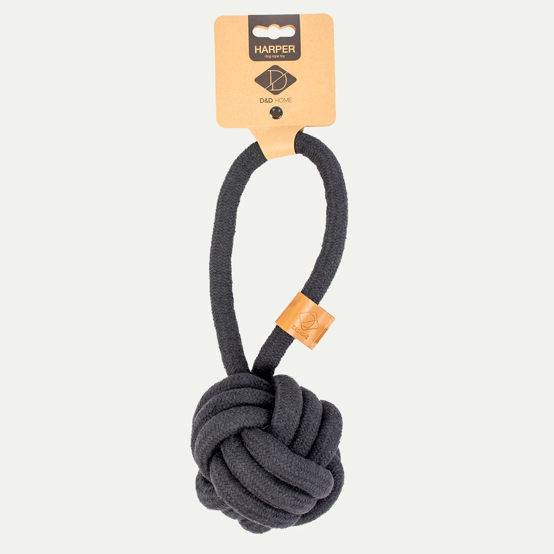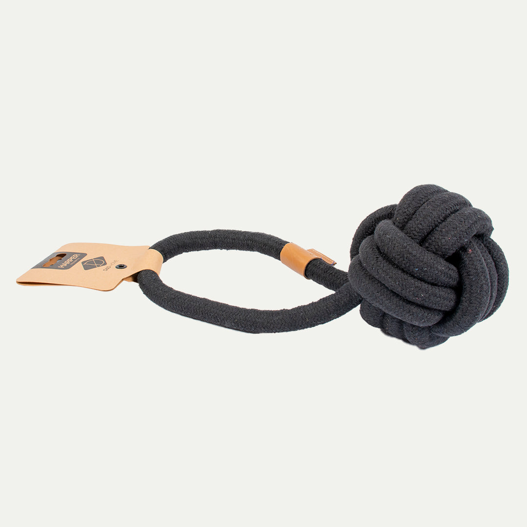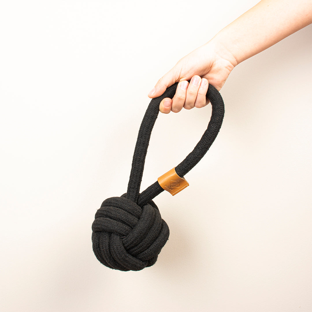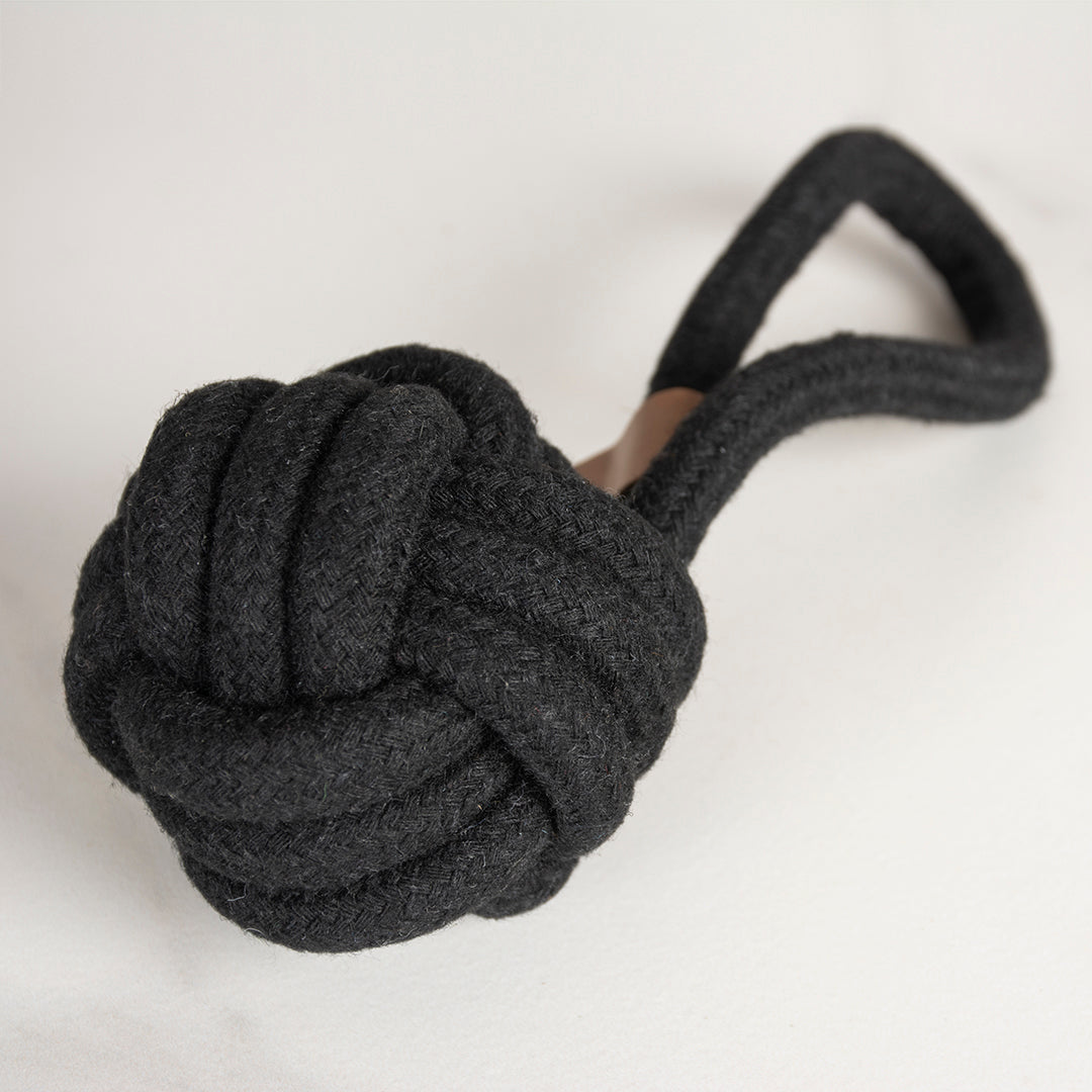 - Duurzaam gevlochten katoenen flosbal met handvat in zwart