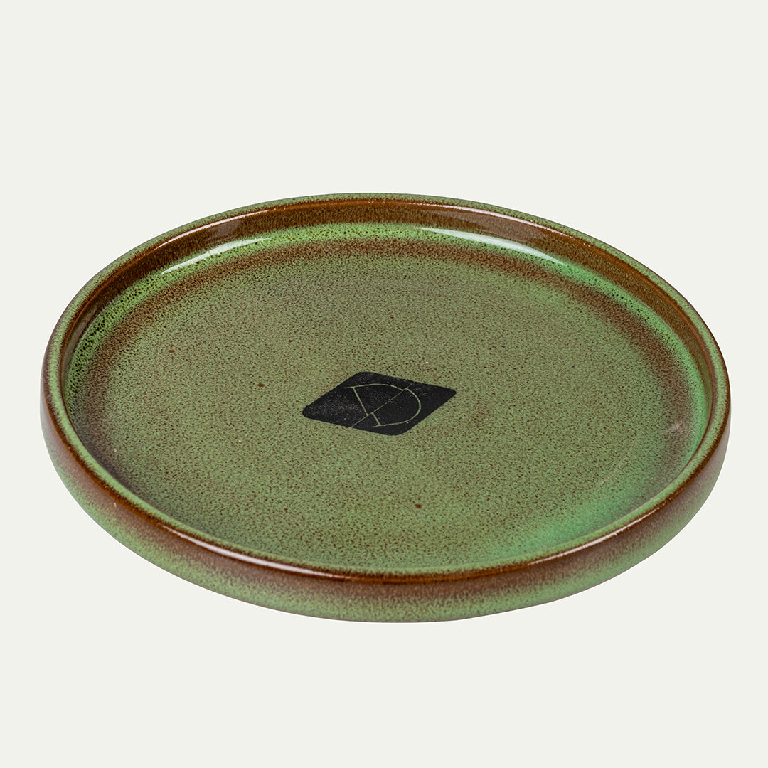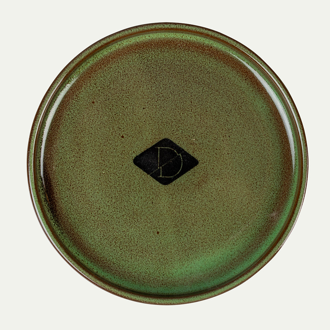- Afgewerkt met een eigentijdse groene glazuur