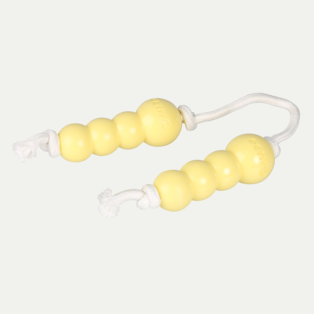 Puppyspeeltje Pilou van PETIT is een leuk touw- en kauwspeeltje voor puppy's of kleine honden. De Pilou maakt het samen spelen een ware uitdaging; Wie laat er eerst los? Hoe ver kan je Pilou werpen? De combinatie van natuurlijk rubber en touw zorgt voor een ultieme kauwervaring. Het touw reinigt de tanden en het rubber verlicht pijn bij doorkomende tandjes of tandenwissels en geeft een kalmerend gevoel. Het is gemaakt in TPE rubber, veilig en bevat geen BPA. Het speeltje heeft een pastelkleur, een van de weinige kleuren die een hond kan waarnemen.