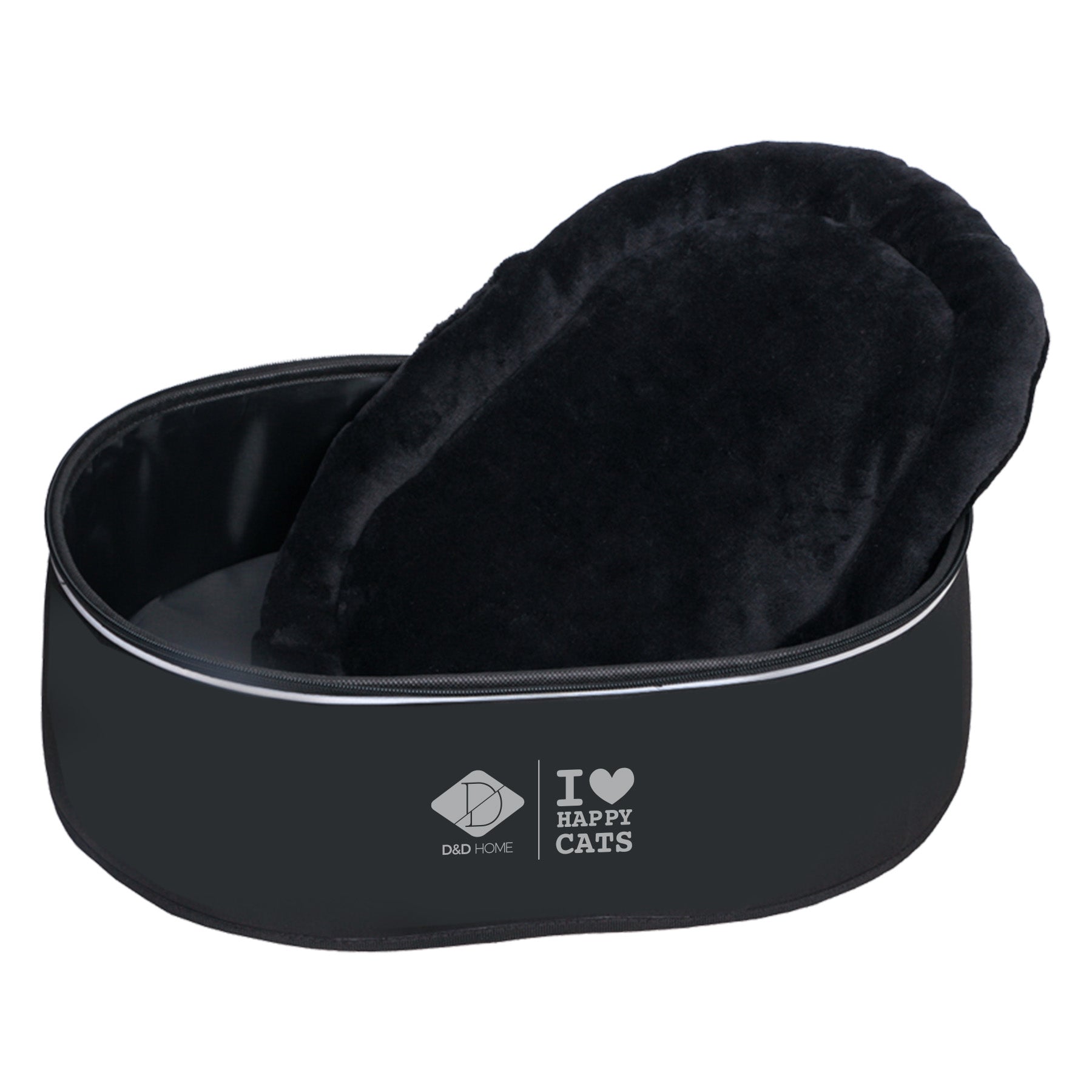 PHOEBE van D&D Home | I LOVE Happy Cats is ontworpen in samenwerking met kattengedragstherapeut Anneleen Bru en is een multifunctionele transporttas voor je kat. Hij bestaat uit een kattendraagtas, huis en bed/mand ineen. Je kan het mandgedeelte onderaan gebruiken om je kat aan de draagtas te doen wennen zonder die te associëren met een onprettige gebeurtenis zoals een bezoek aan de dierenarts. Het bed kan uit de mand worden gehaald en is wasbaar. De zachte materialen en ronde vorm geven je kat een veilig gevoel. PHOEBE heeft een handgreep aan de bovenkant zodat je hem vlot kan optillen. De handige vakjes aan de achterkant van de mand maken deze multifunctionele tas helemaal af. Ze zijn perfect om het paspoort van je kat en haar medicatie in op te bergen.