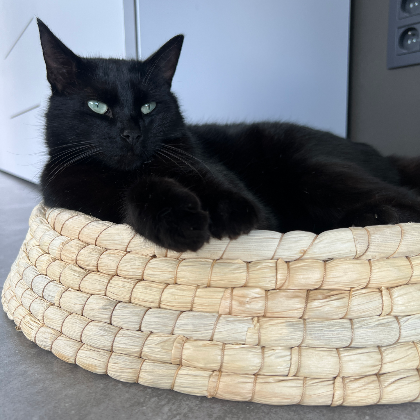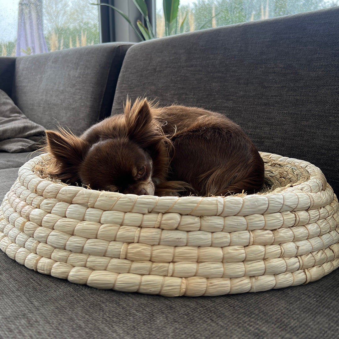 Deze kattenmand Siesta wordt de nieuwe favoriet van jouw kat! Deze mooie slaapplaats, gemaakt uit maïsbladeren, heeft een natuurlijke boho-stijl en zal uitblinken in welke ruimte hij ook staat! De maïsbladeren zijn een leuk materiaal voor jouw kat, ze zijn warm om op te liggen en leuk om aan te krabben. Bovendien staat de ligplaats wat van de grond, en daar houden katten van.