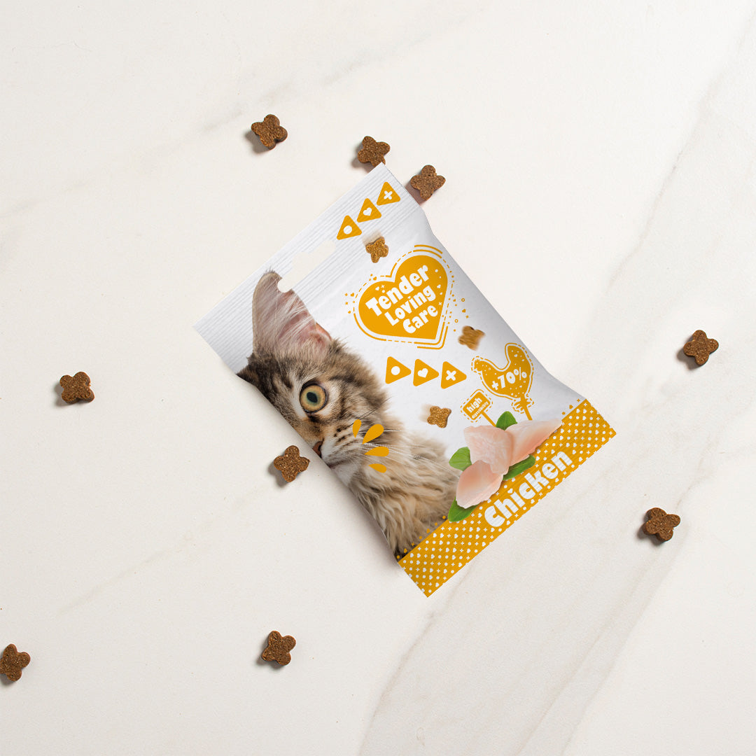 De Tender Loving Care of TLC snacks van duvoplus zijn heerlijk zachte en smakelijke premium kattensnacks. Ze zijn geproduceerd in de EU en ze bevatten geen kunstmatige kleurstoffen of aroma`s. Deze glutenvrije variant met kip bevat meer dan 70% vlees, maar ook rijst en oregano-olie voor een optimale textuur en smaak. Het zijn de ideale beloningssnacks, GGO-vrij en hypoallergeen.