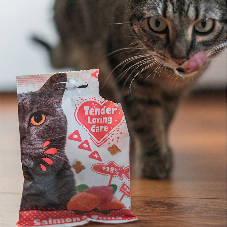 De Tender Loving Care of TLC snacks van duvoplus zijn heerlijk zachte en smakelijke premium kattensnacks. Ze zijn geproduceerd in de EU en ze bevatten geen kunstmatige kleurstoffen of aroma`s. Deze glutenvrije variant met zalm en tonijn bevat meer dan 28% vis en 40% kip, maar ook rijst en oregano-olie voor een optimale textuur en smaak. Het zijn de ideale beloningssnacks, GGO-vrij en hypoallergeen.